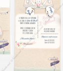 Invitaţie de nuntă ce reprezintă imaginea unui cuplu proaspăt căsătorit. Invitaţia include sfoara alb-negru care prinde cele 2 inimi pe care se scriu numele mirilor. Plicul este inclus în preţ.